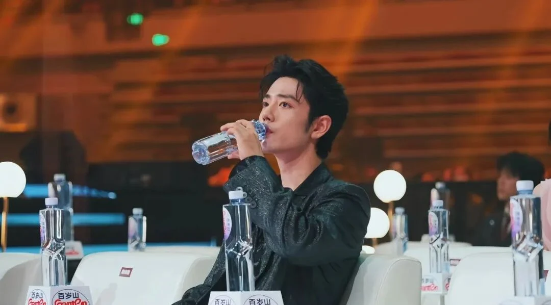 作为独家冠名商,百岁山习惯用物料占满镜头。所有嘉宾座位的扶手上,都被放置了一瓶固定展示用的百岁山模型瓶,粘得太牢,别说拧开,连纹丝不动都没机会。这个原本合情却格外“心机”的设计,好巧不巧被肖战、白敬亭、陈伟霆三人的“喝水现场”扒了底。